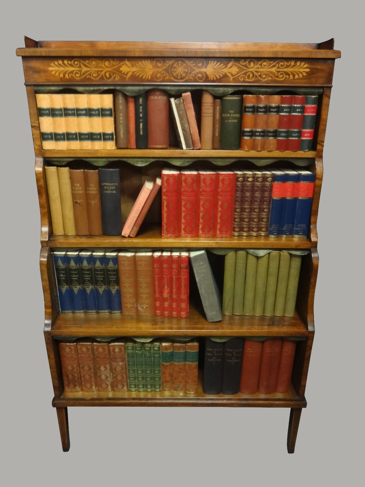 This is a very good 19th Century Victorian antique waterfall bookcase in walnut with very good inlays,, in very good original condition.