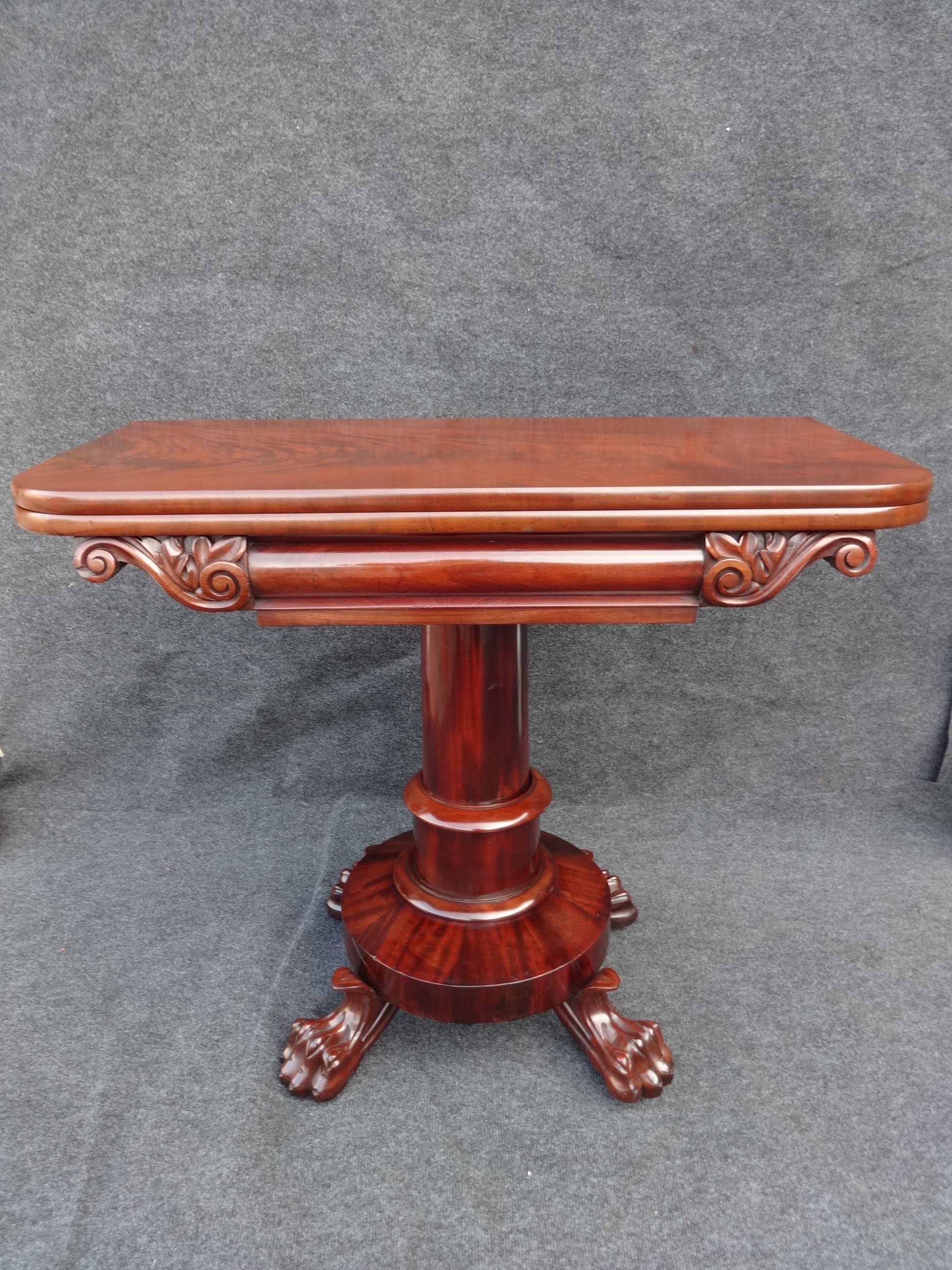 Offered for sale is this fantastic antique William IV mahogany tea table that has a cylinder column and paw feet. It is in excellent condition and has fantastic veneers.