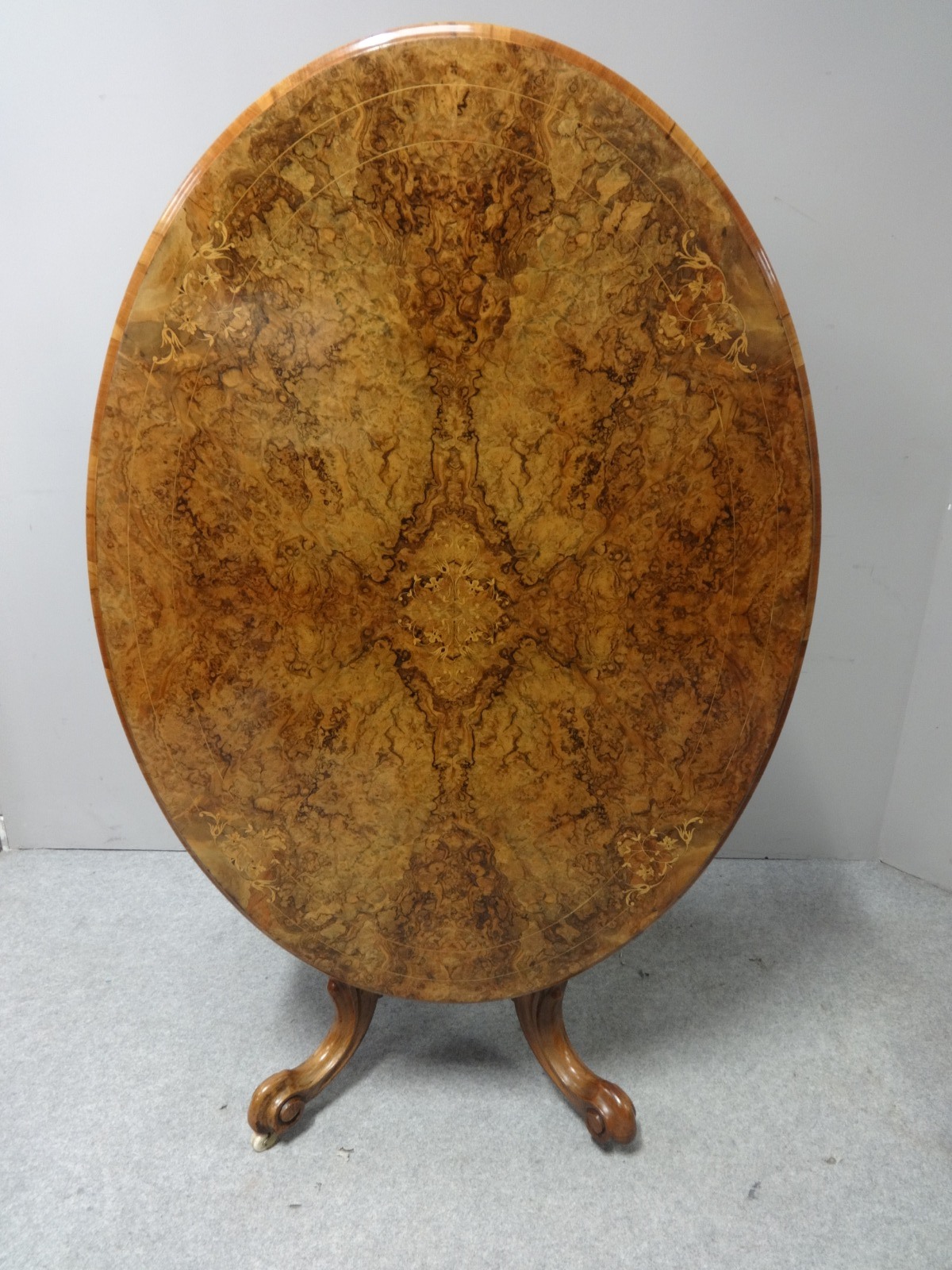 Wonderful Burr Walnut Inlaid Loo Table c.1860