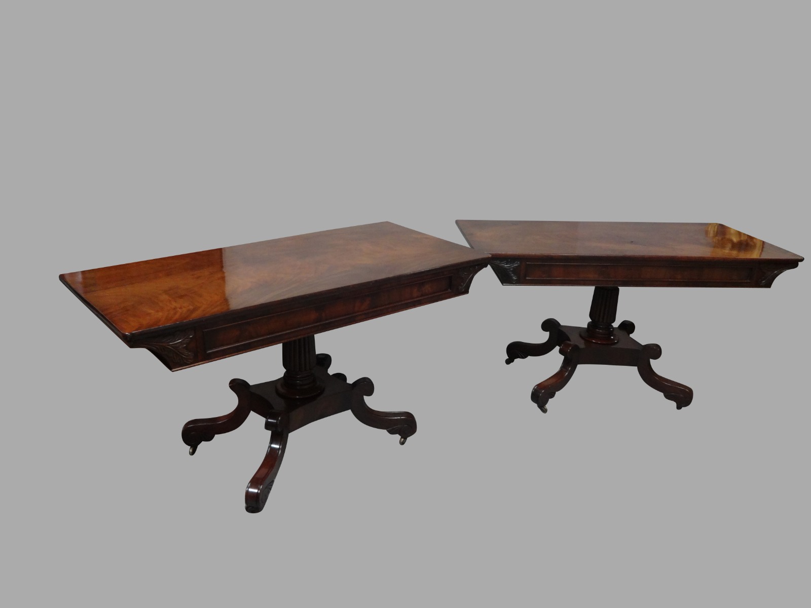 A large super pair of solid Cuban mahogany William 4th console tables, standing on platform bases, in very good original condition having just been waxed and ready for use.