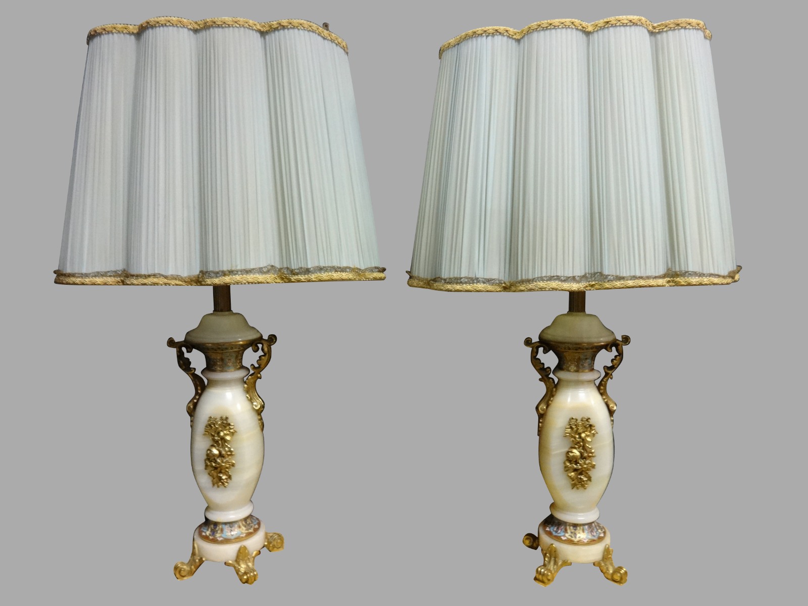 Wonderful Pair of Chamleve & Alabaster Table Lamps